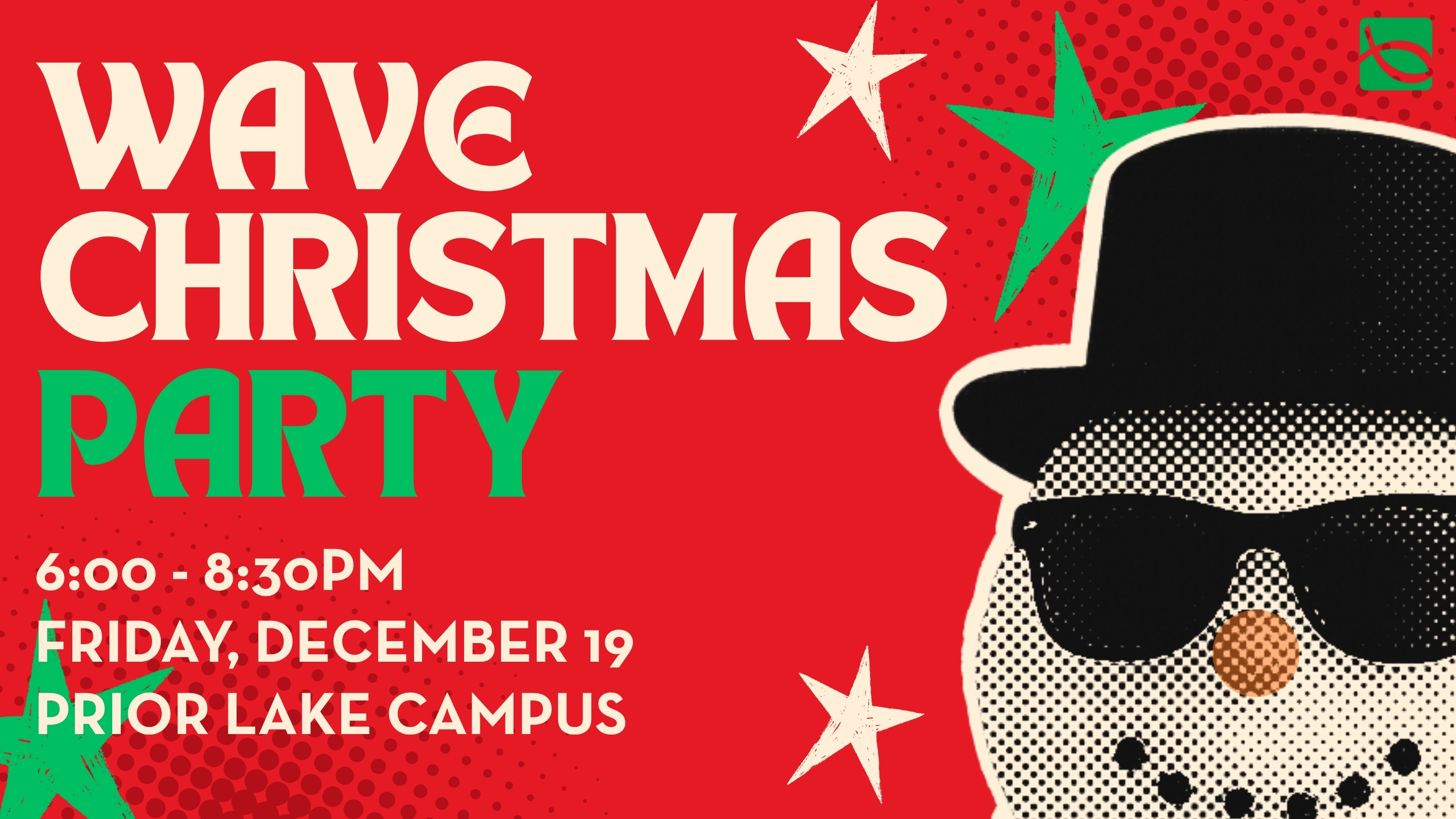 Students in grades 4-5 are invited to the Wave Christmas Party! We will be celebrating the birth of Jesus with games and activities while building relationships with peers. Dinner will be served. Invite a friend!